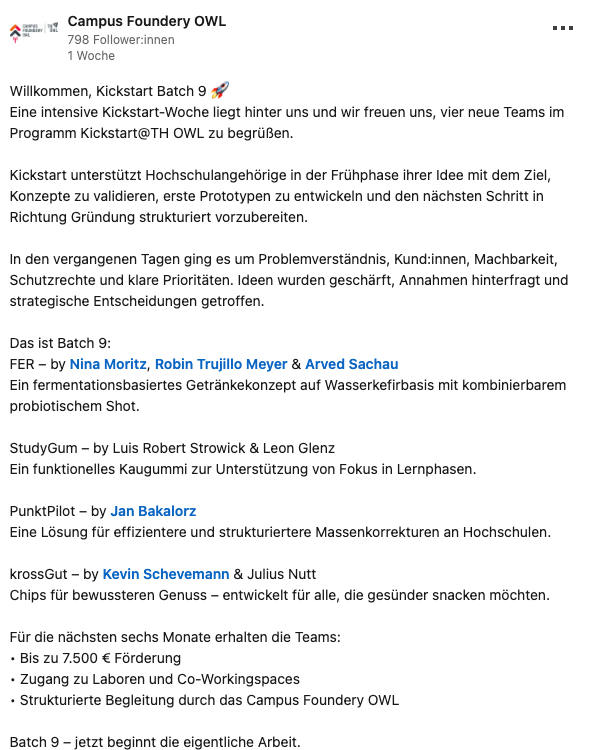 EXIST, KickstartTH OWL und weitere Förderprogramme für deinen Start.